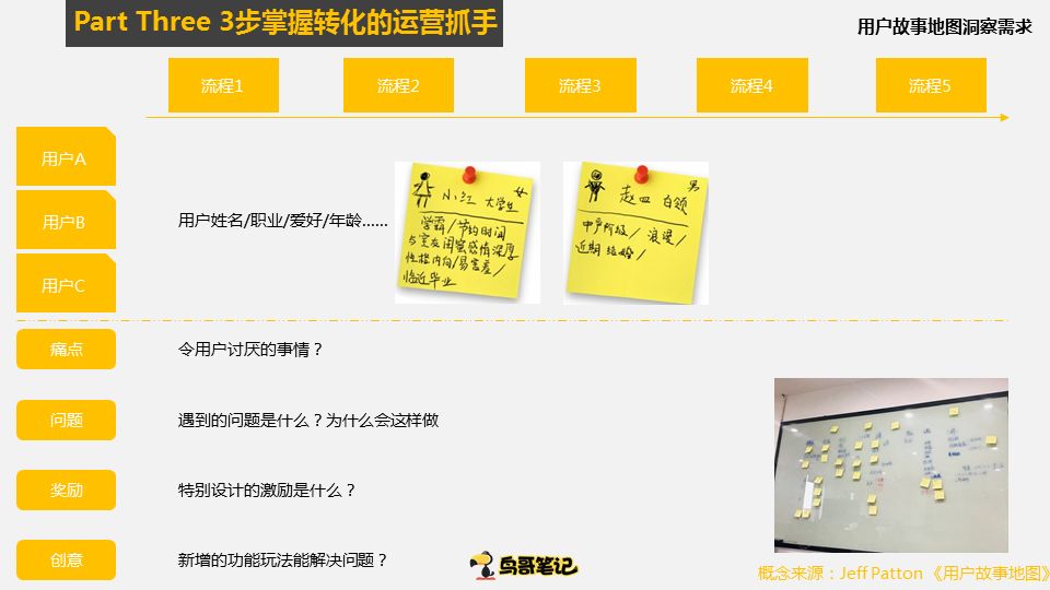 用户故事地图是敏捷开发中一个非常好的工具,更多的是给产品在需求拆分过程中保持全景图的方法,但是同样适合于我们运营,让我们可以在研究转化的过程中更加全面和精细化。