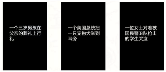 下面是几个黑色方块,每个方块里都用白色字体写了一句话: